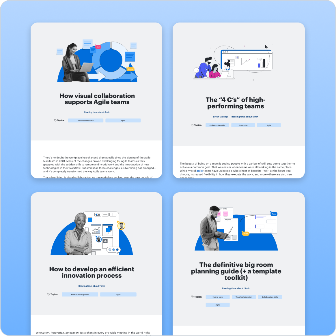Whether you’re looking for guidance on implementing Agile principles with your team or leading large-scale Agile transformations, Lucid’s blog features articles to help you get up and running.