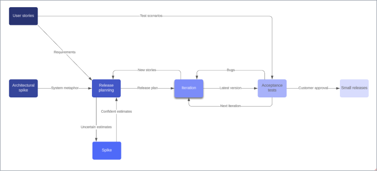 - Extreme Programming promotes a lot of face-to-face interaction, which is challenging for distributed teams or teams that aren’t able to meet with their customers as often.