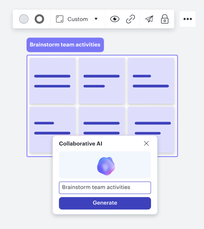 If you’re really looking to automate, consider utilizing Lucidspark's Collaborative AI feature. Collaborative AI supercharges your brainstorming sessions by generating more ideas, quickly, then automatically capturing the big picture by sorting and summarizing those ideas. In seconds, Collaborative AI will help you name and iterate common themes evident in your ideas, and then provide you with a list of action items so you can easily take the next steps.