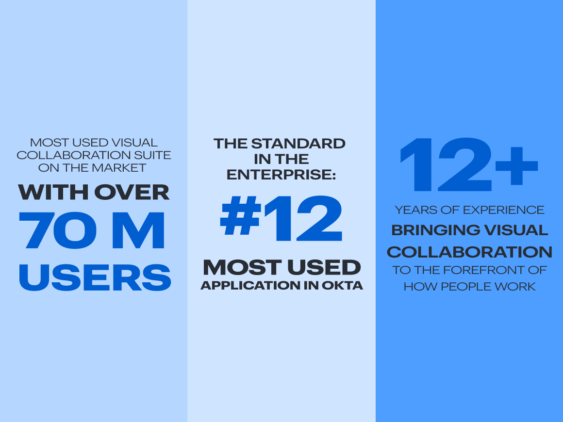 Okta has reported that more enterprises rely on Lucid than any other Visual Collaboration vendor, and in 2023 they reported that Lucid is the 13th most used enterprise application among Okta customers—far outpacing any other competitor.