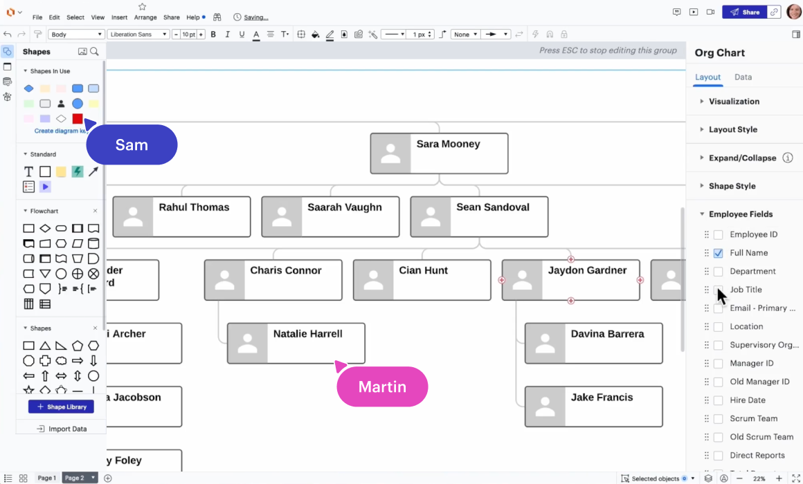 One of the ways we solve this pain point is by using Lucid to create highly intelligent org charts.