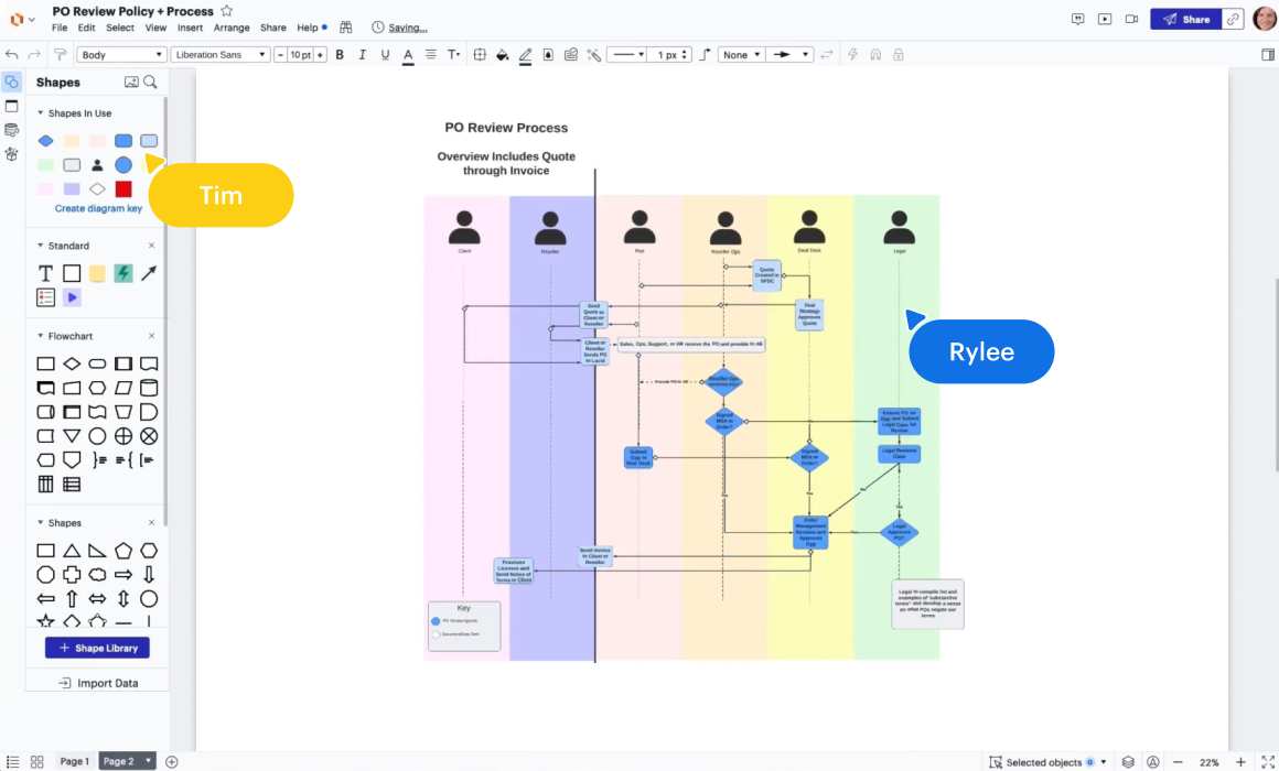 For example, let's explore the benefits we experience from using Lucid to outline our purchase order (PO) review process for our sales teams.