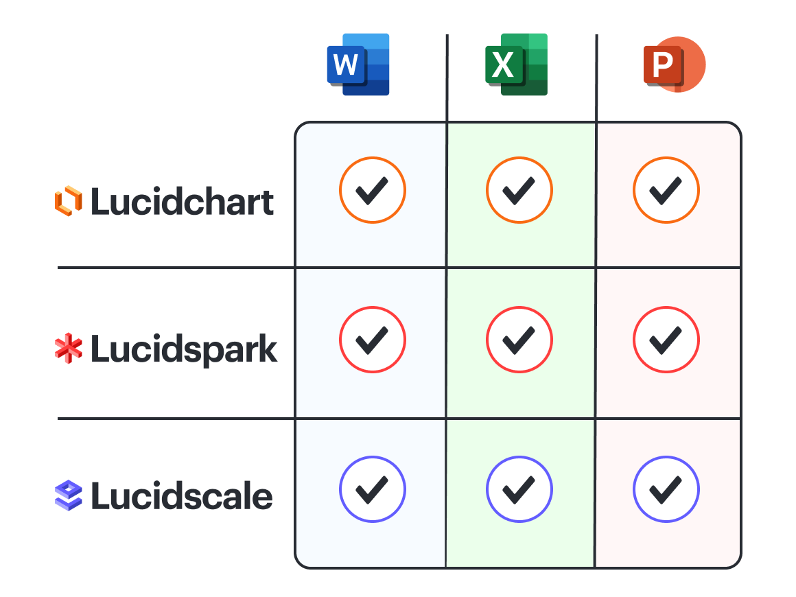 Now you can integrate Lucidspark and Lucidscale with Microsoft Word, PowerPoint, and Excel. Plus, we’ve updated the UI and functionality of our Lucidchart Microsoft integrations.