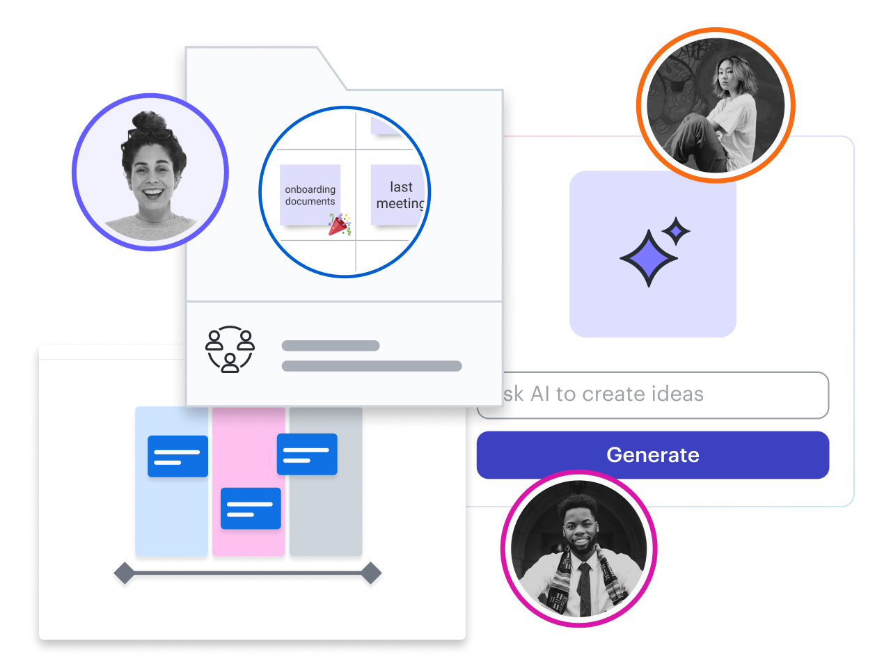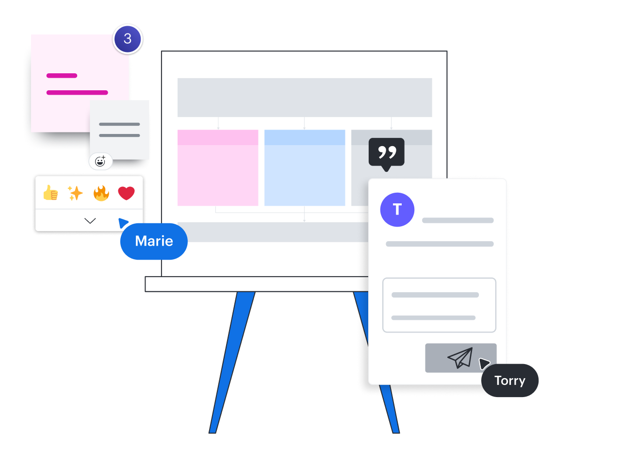 Lucidspark’s virtual whiteboarding provides all the Jamboard features you know and love, like sticky notes, freehand drawing, and shapes. But it includes additional capabilities to keep teams in sync, including comments, Visual Activities, Collaborative AI, voting, and more.