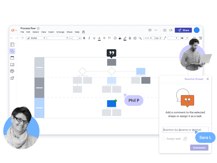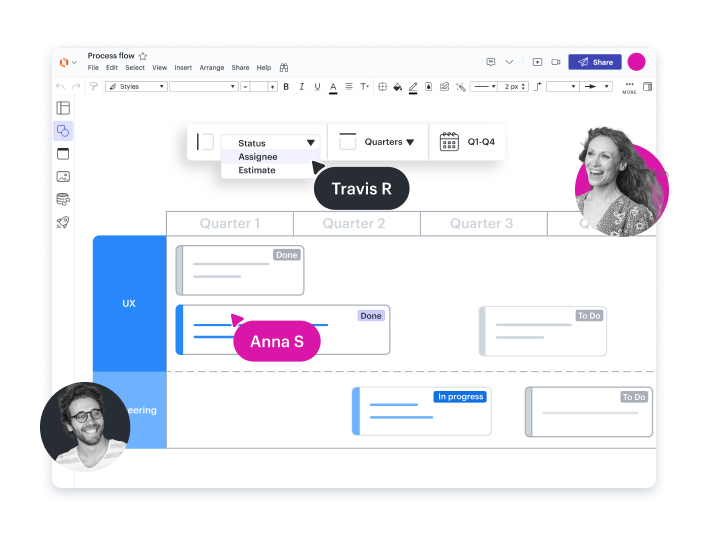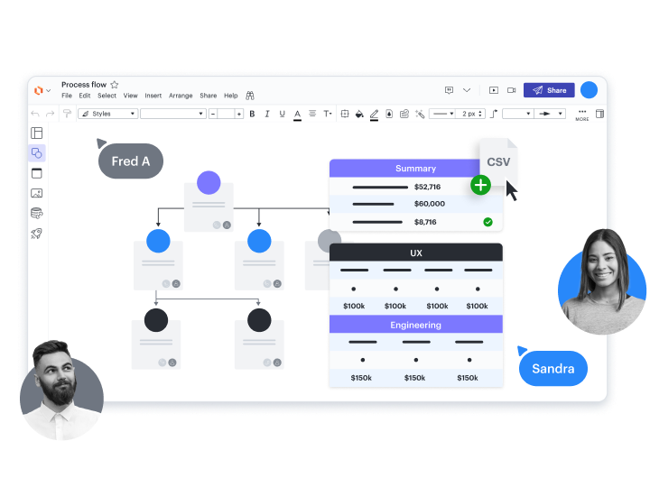 Share your ideas using Lucid for team collaboration online. Make it easy for everyone to give feedback, ideate in real time, and work better together.