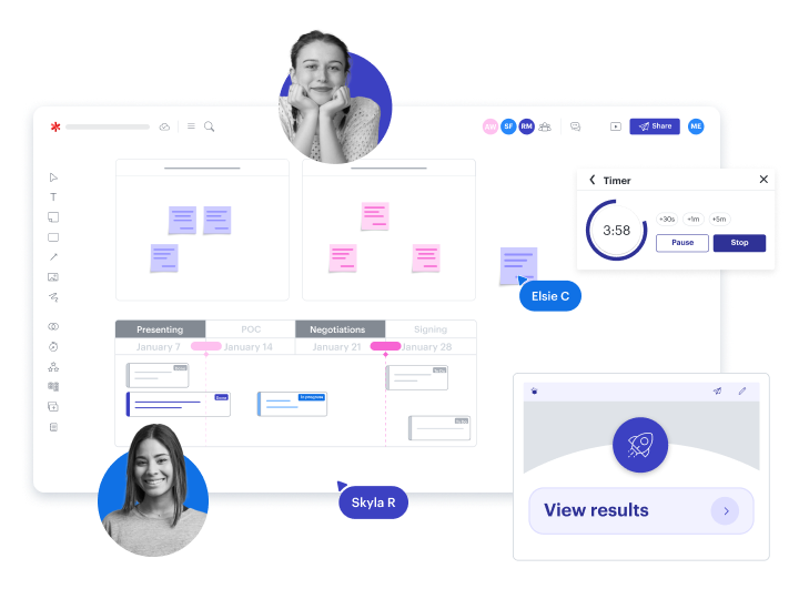 Use our online collaboration tools on any device from anywhere—in real time, anytime, or even offline. Facilitate engaging team meetings with the Lucidspark virtual whiteboard.