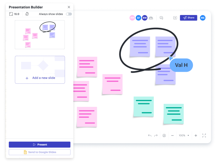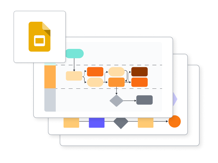 Deliver your presentation directly from the Lucid platform, or export your content to Google Slides or PDF. Either way, you can use Lucid to create diagrams, flowcharts, and other visuals to elevate your slideshow.