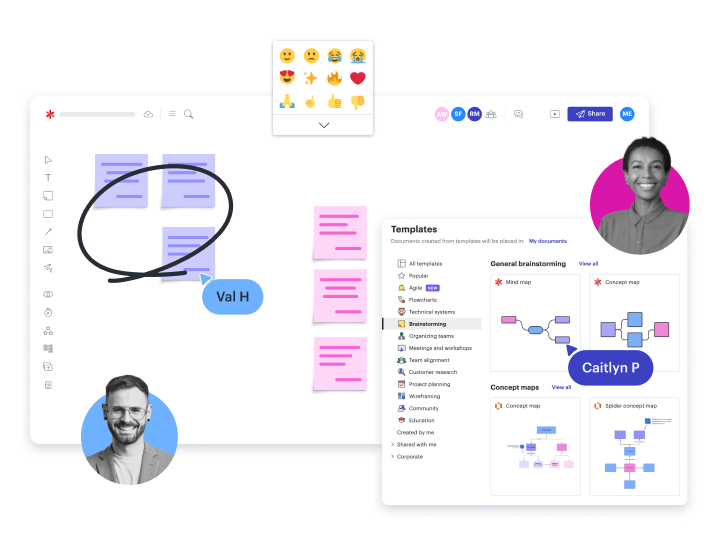 More complete visual collaboration. Get two highly connected yet individually powerful applications. Keep your team working together with Lucidchart for intelligent diagramming and Lucidspark for virtual whiteboarding.