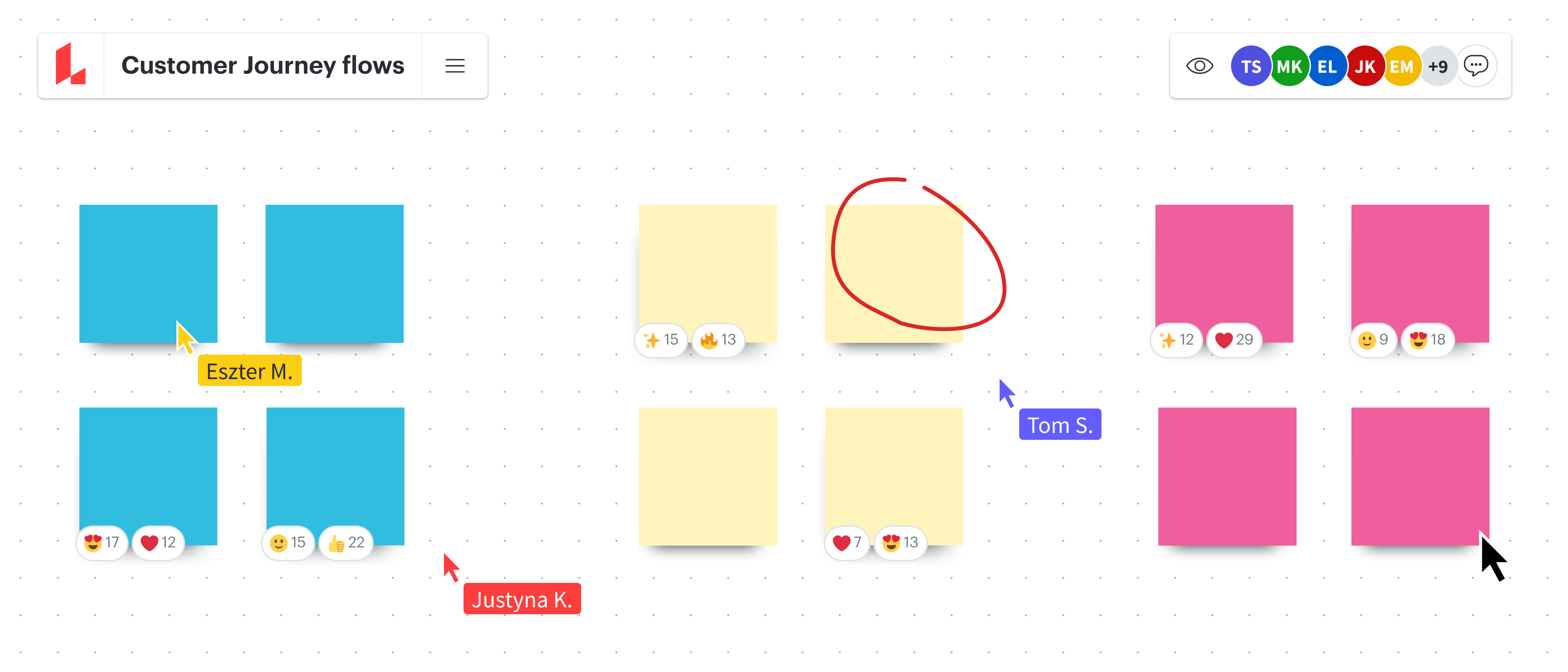 „In meinen Augen ist die Abstimmungsfunktion wirklich wichtig, und es gefällt mir, dass man später einen Abstimmungsbericht erhält und mehrere Abstimmungsrunden abhalten kann. Aber auch die intuitive Verwendung von Emoji-Reaktionen gefällt mir. Man weiß schließlich nicht immer, aus welchem Grund die Leute für eine bestimmte Option stimmen. Anhand der Emojis kann man dies nachvollziehen, da sie bestimmte Emotionen darstellen. Das ist eine wirklich tolle Funktion, die ich bisher von keiner anderen Whiteboarding-Lösung kannte.“