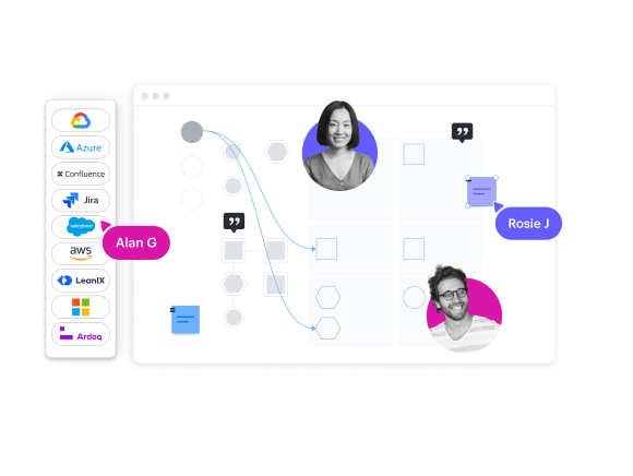 Erstellen Sie Diagramme und dokumentieren Sie die Beziehung zwischen internen Tools. Integrieren Sie Confluence, um Diagramme in Ihre Wissensdatenbank einzubetten.