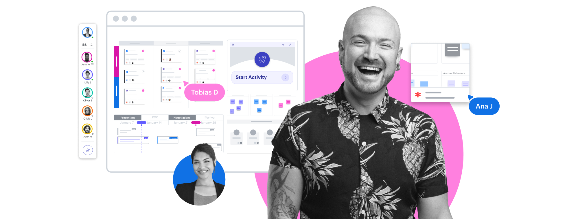 Arbeiten Sie Seite an Seite mit Ihren Kunden, um den gemeinsamen Erfolg sicherzustellen. Erstellen und teilen Sie Onboarding- und Engagement-Pläne in der Visuellen Kollaborationssuite von Lucid.