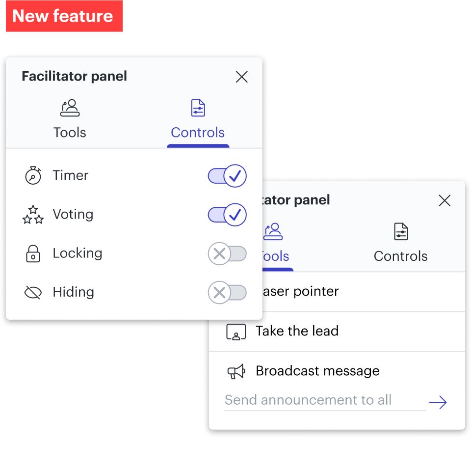 Mit den Moderationskontrollen (Facilitator Controls) können Sie bestimmte Funktionen auf dem Board für Teilnehmende sperren. So stellen Sie sicher, dass Workshops und Brainstorms reibungslos und ohne Ablenkungen ablaufen.