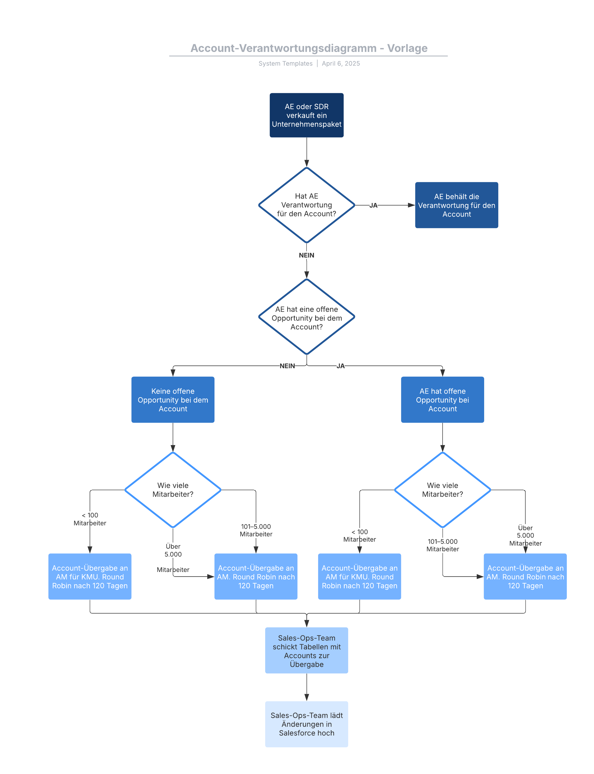 Durch Öffnen dieser Vorlage wird ein Beispiel für ein Diagramm zur Visualisierung der Account-Verantwortung angezeigt, das Sie an Ihren Anwendungsfall anpassen können.