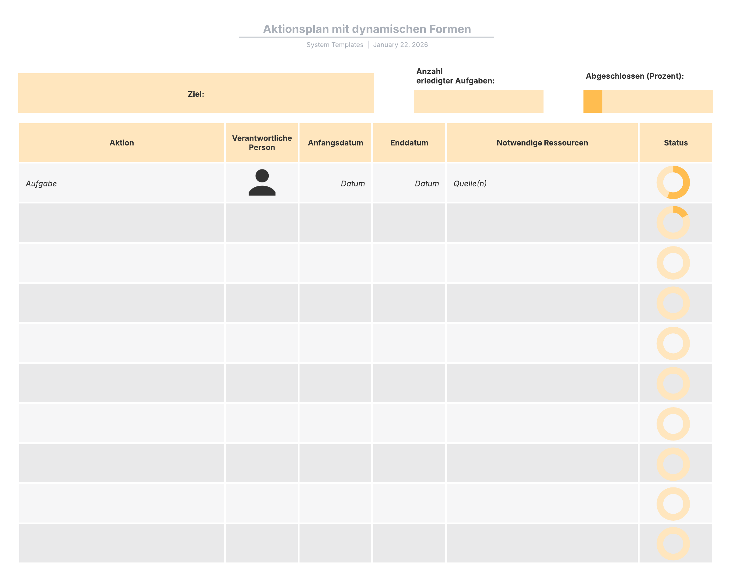 Öffnen Sie diese Vorlage und fügen Sie Inhalte hinzu, um diesen Aktionsplan mit intelligenten Containern anzupassen, die Sie auf Ihren Anwendungsfall abstimmen können.