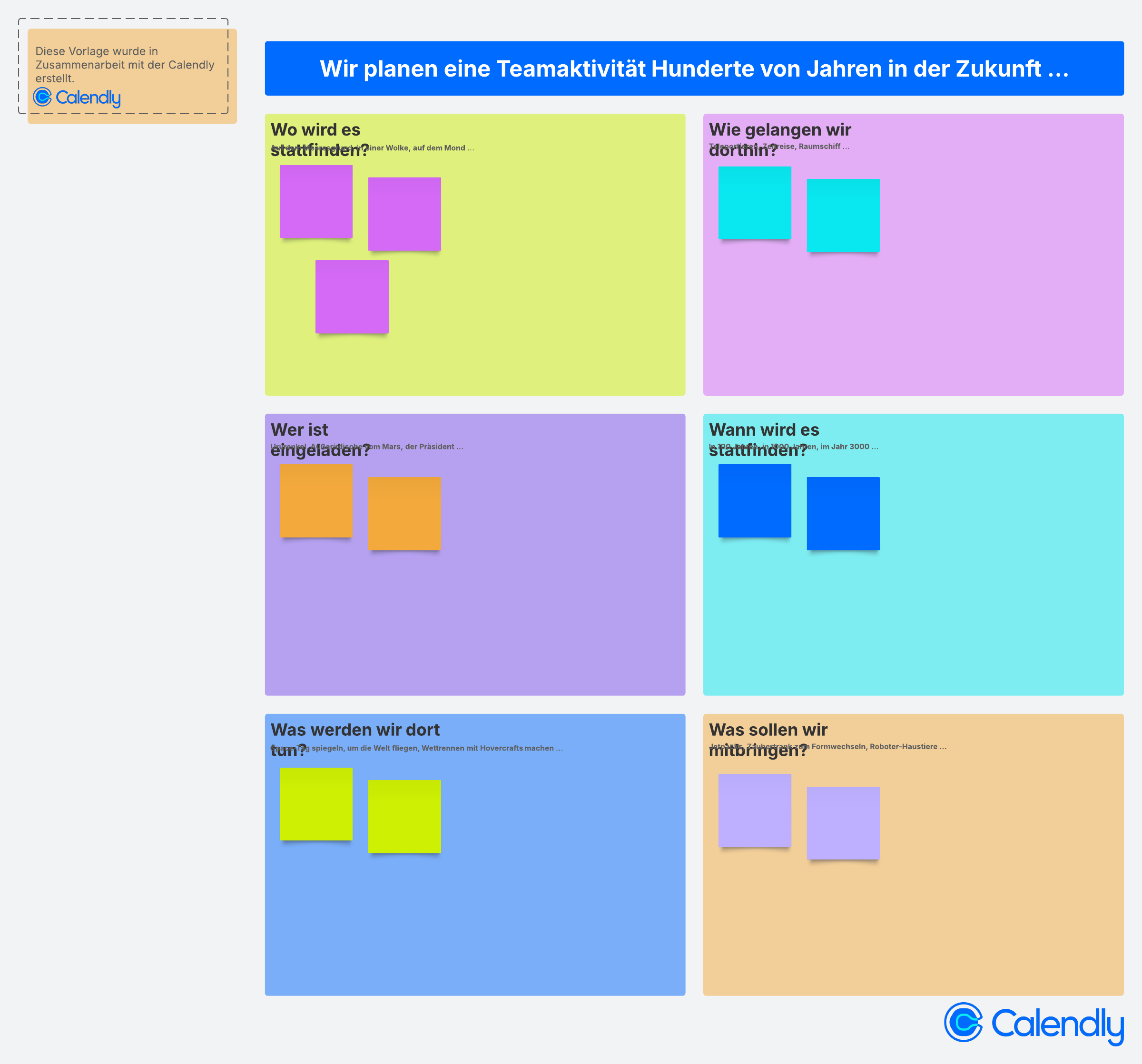 Diese von Calendly gesponserte Aktivität ist ein lockerer Einstieg in Meetings: Planen Sie eine hypothetische Teamaktivität Hunderte von Jahren in der Zukunft.