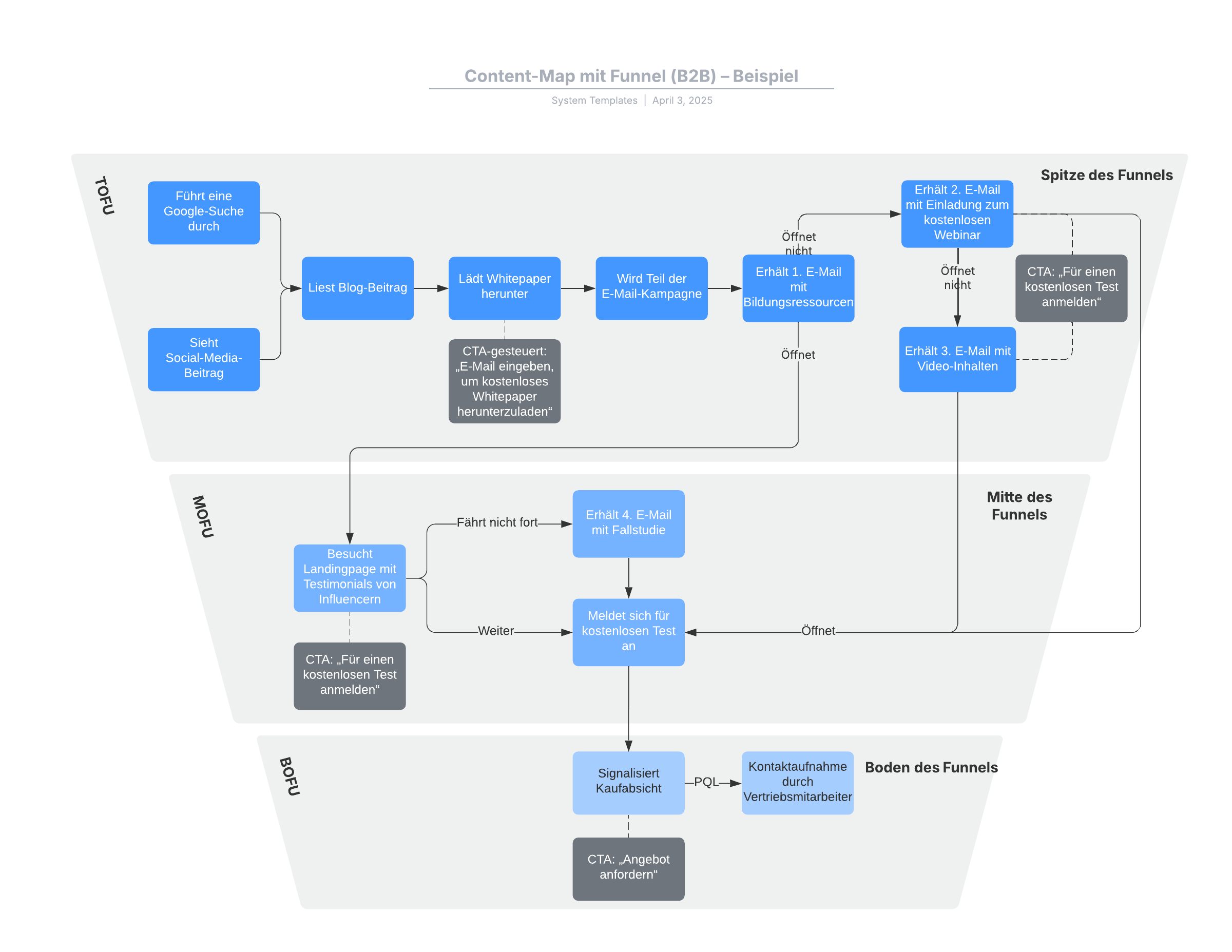 Mit dieser Vorlage für eine Content-Map mit Funnel (B2B) können Sie: