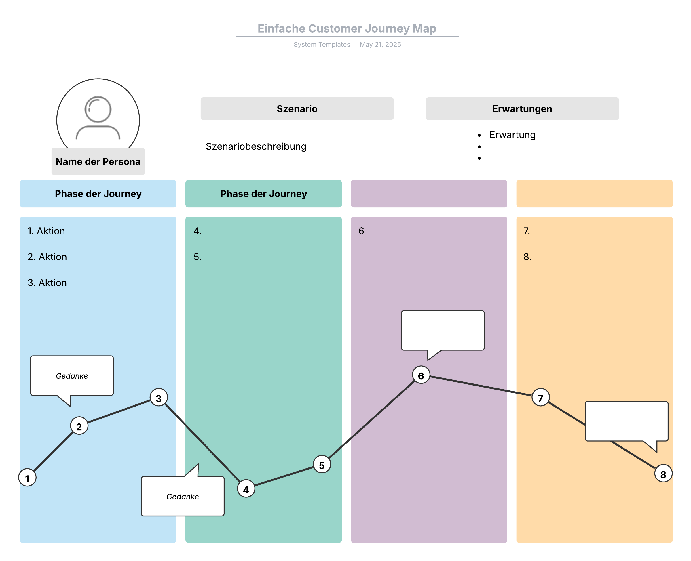 Diese Vorlage einer grundlegenden Customer Journey Map kann Ihnen folgendermaßen helfen: