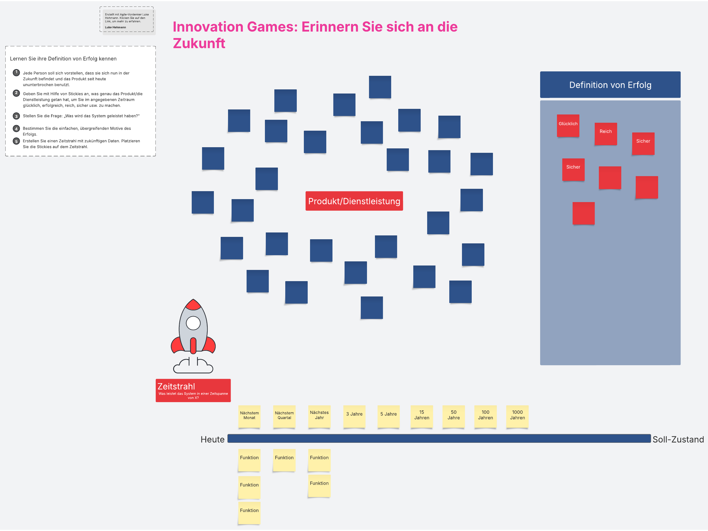 Das Spiel „Erinnern Sie sich an die Zukunft" von Innovation Games ermittelt die Erfolgsdefinition Ihrer Kunden in Bezug auf Ihr Produkt.
