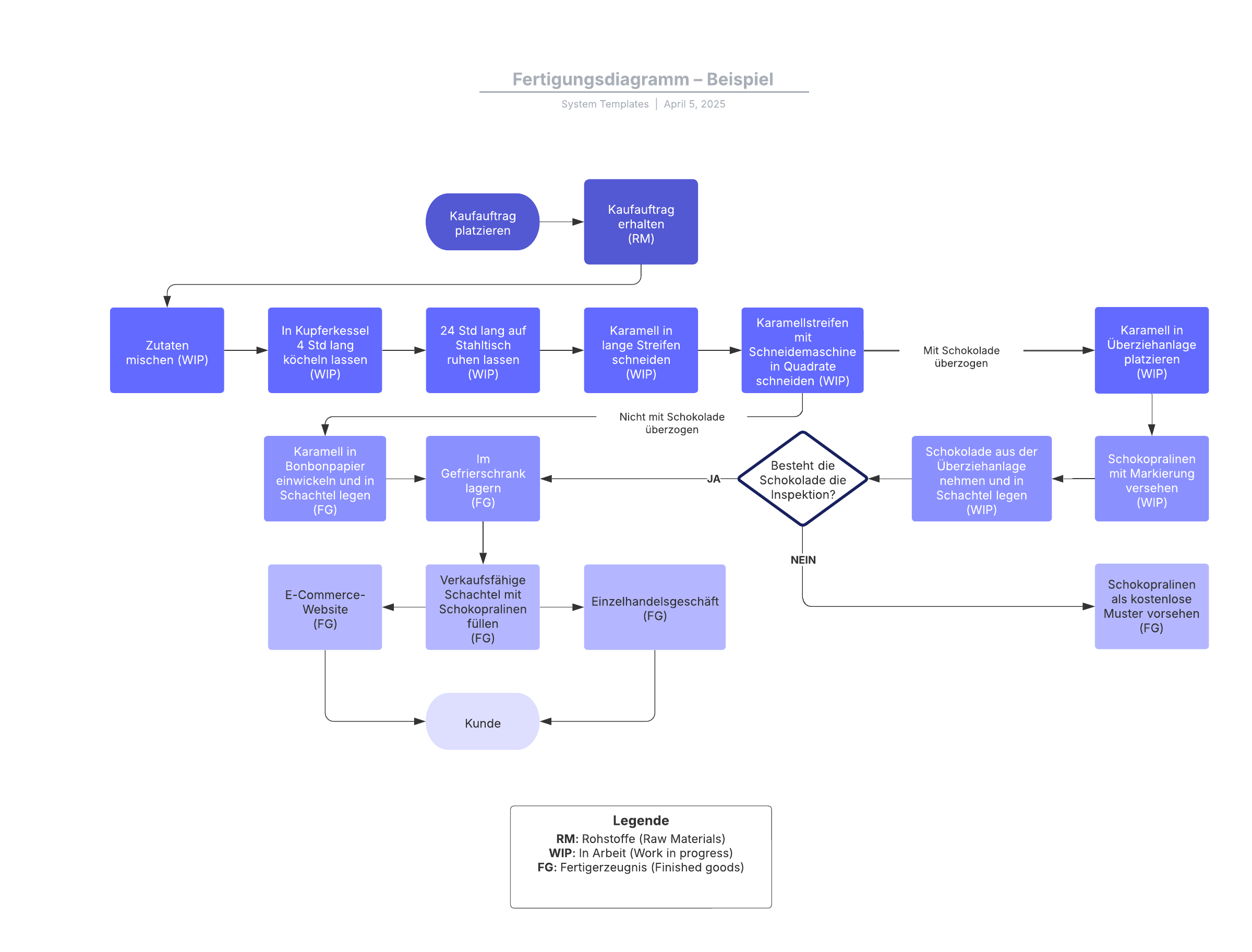 Durch Öffnen dieser Vorlage wird ein detailliertes Beispiel für ein Fertigungsdiagramm angezeigt, das Sie an Ihren Anwendungsfall anpassen können.