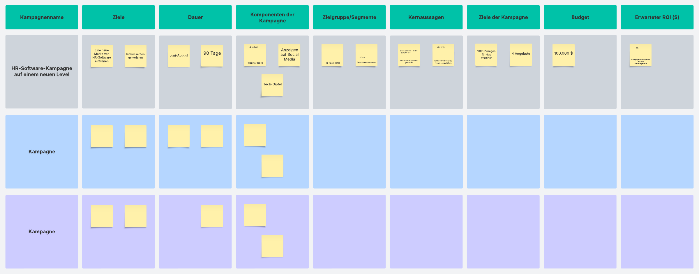 Gestalten Sie die Kampagnenplanung einfach und übersichtlich mit dieser Vorlage.
