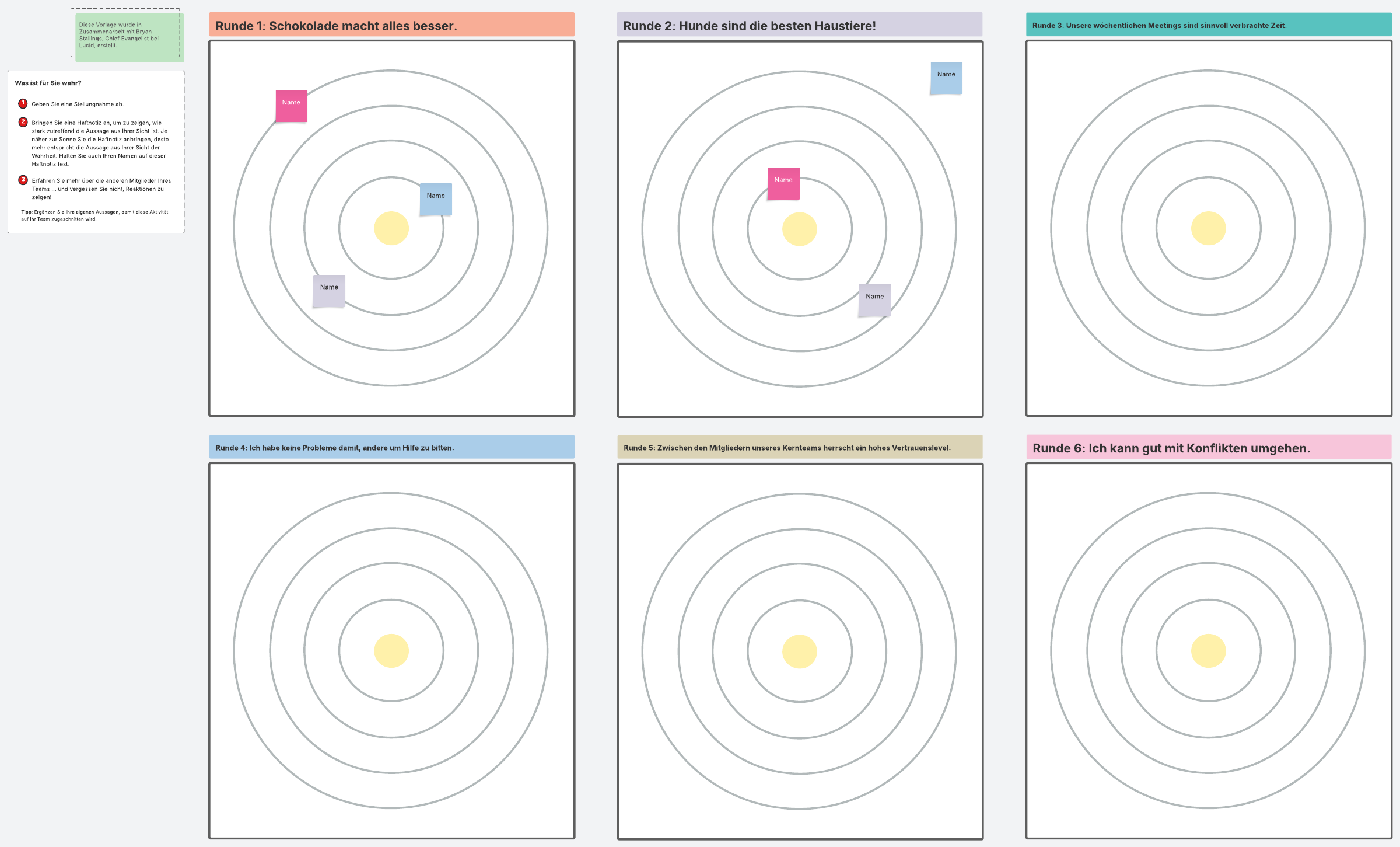 Verwenden Sie diese produktive Kennenlernspiel-Vorlage (Icebreaker Vorlage), um Teammitglieder kennenzulernen und sich aufeinander abzustimmen.