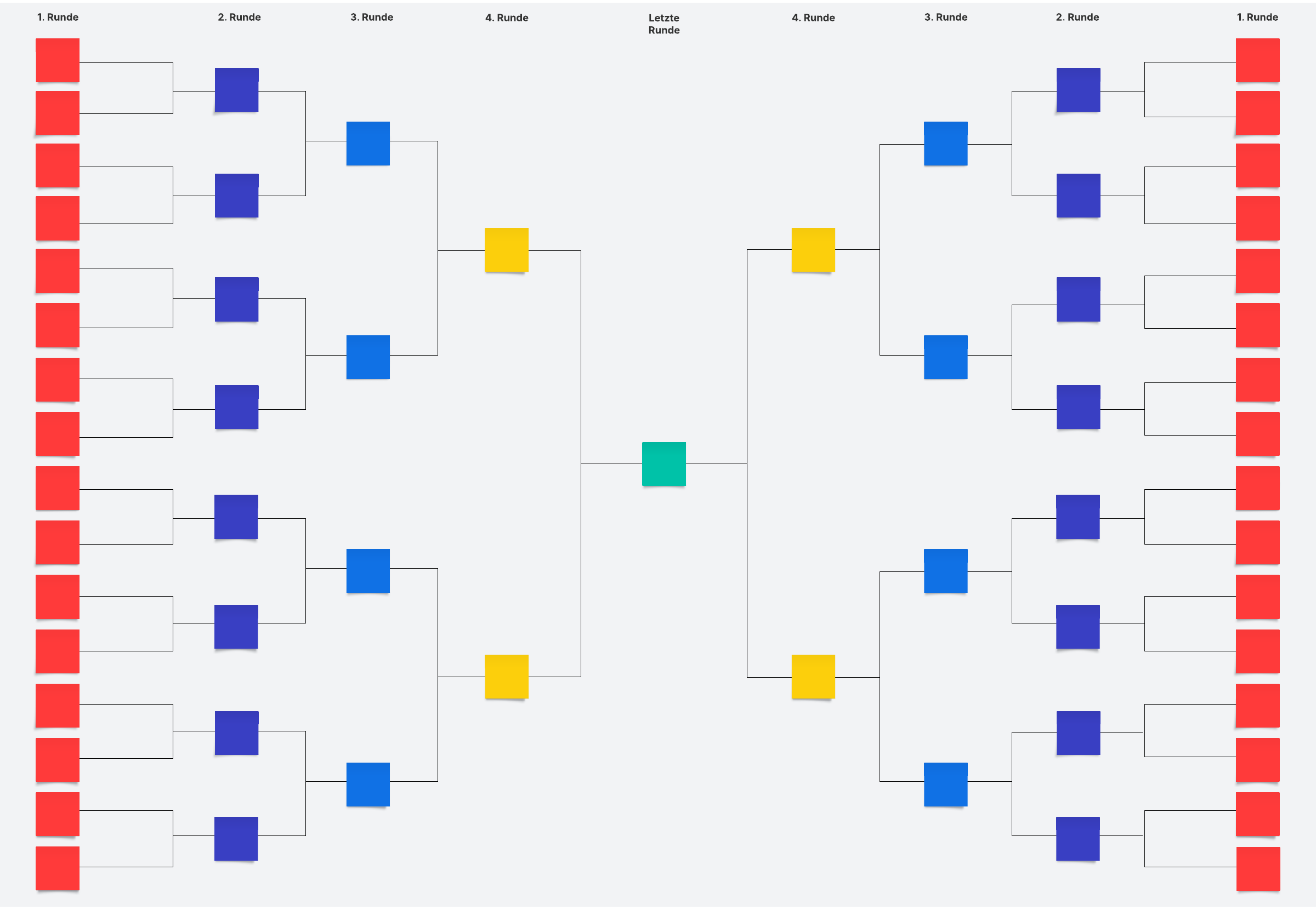 Verwenden Sie die Klammer-Vorlage, um Ihre Entscheidungen zu visualisieren, Teamwettbewerbe auszurichten oder Entscheidungen zu treffen, indem Sie nach und nach die anderen Optionen ausklammern.