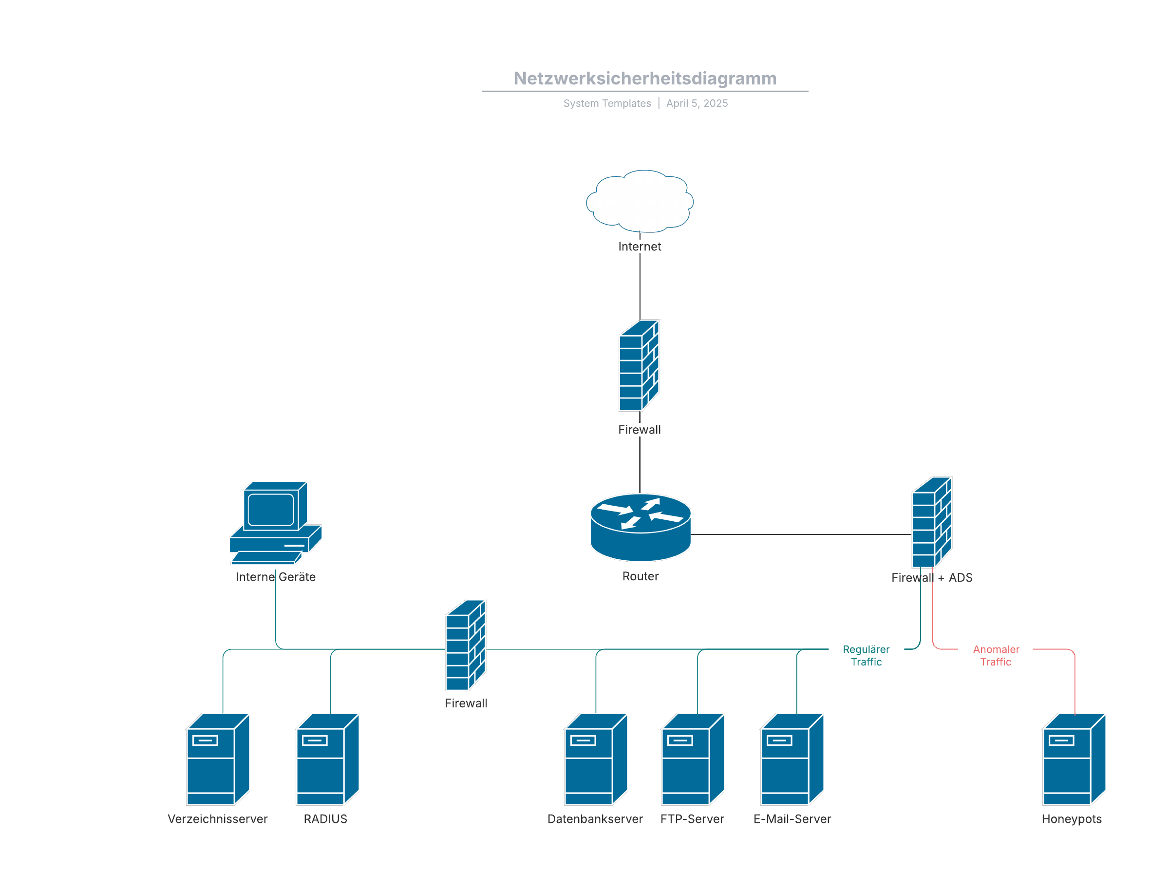 Durch Öffnen dieser Vorlage wird ein Beispiel für ein Netzwerksicherheitsdiagramm angezeigt, das Sie an Ihren Anwendungsfall anpassen können.