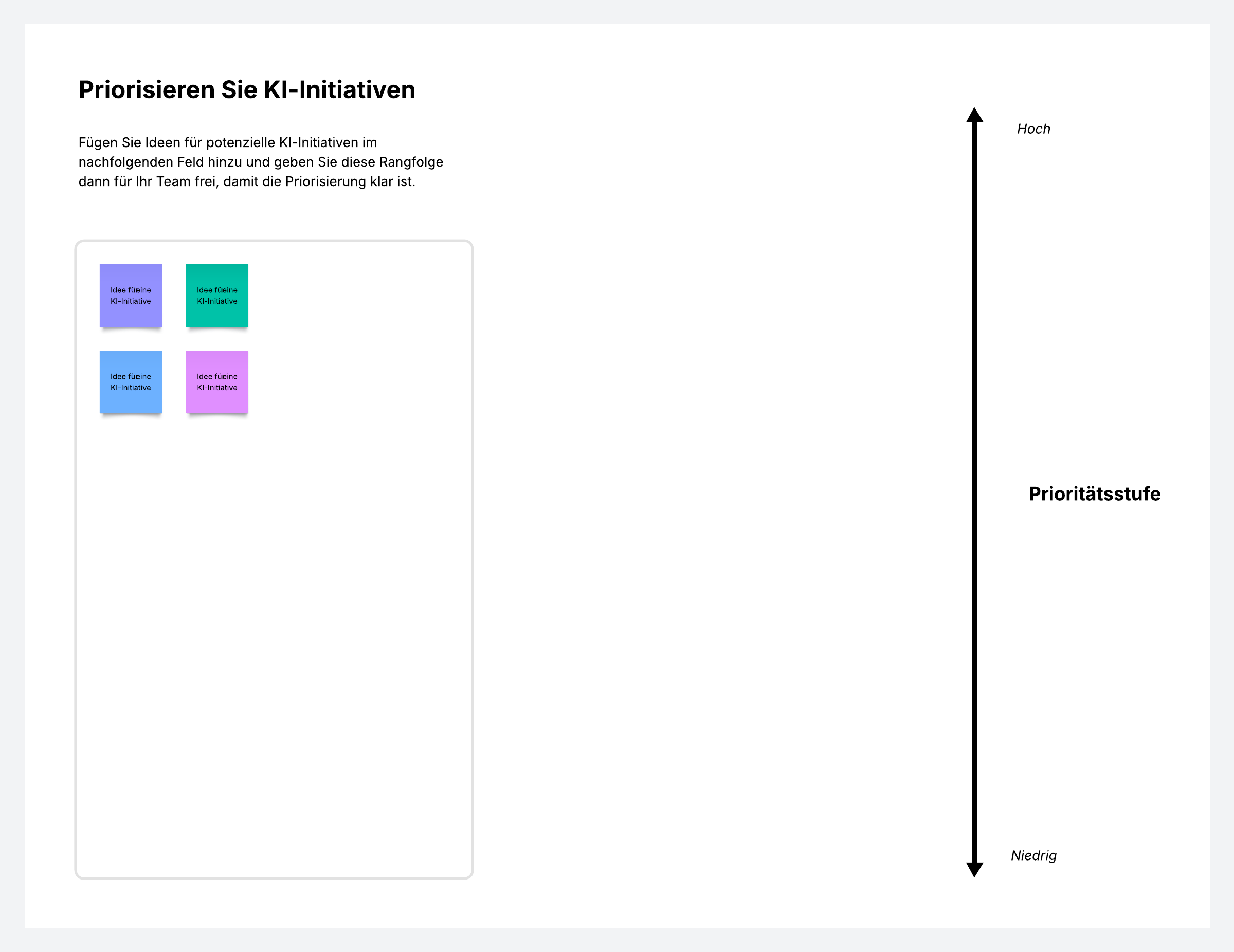 Ordnen Sie Ideen für KI-Initiativen auf einer Prioritätsskala von hoch bis niedrig ein.