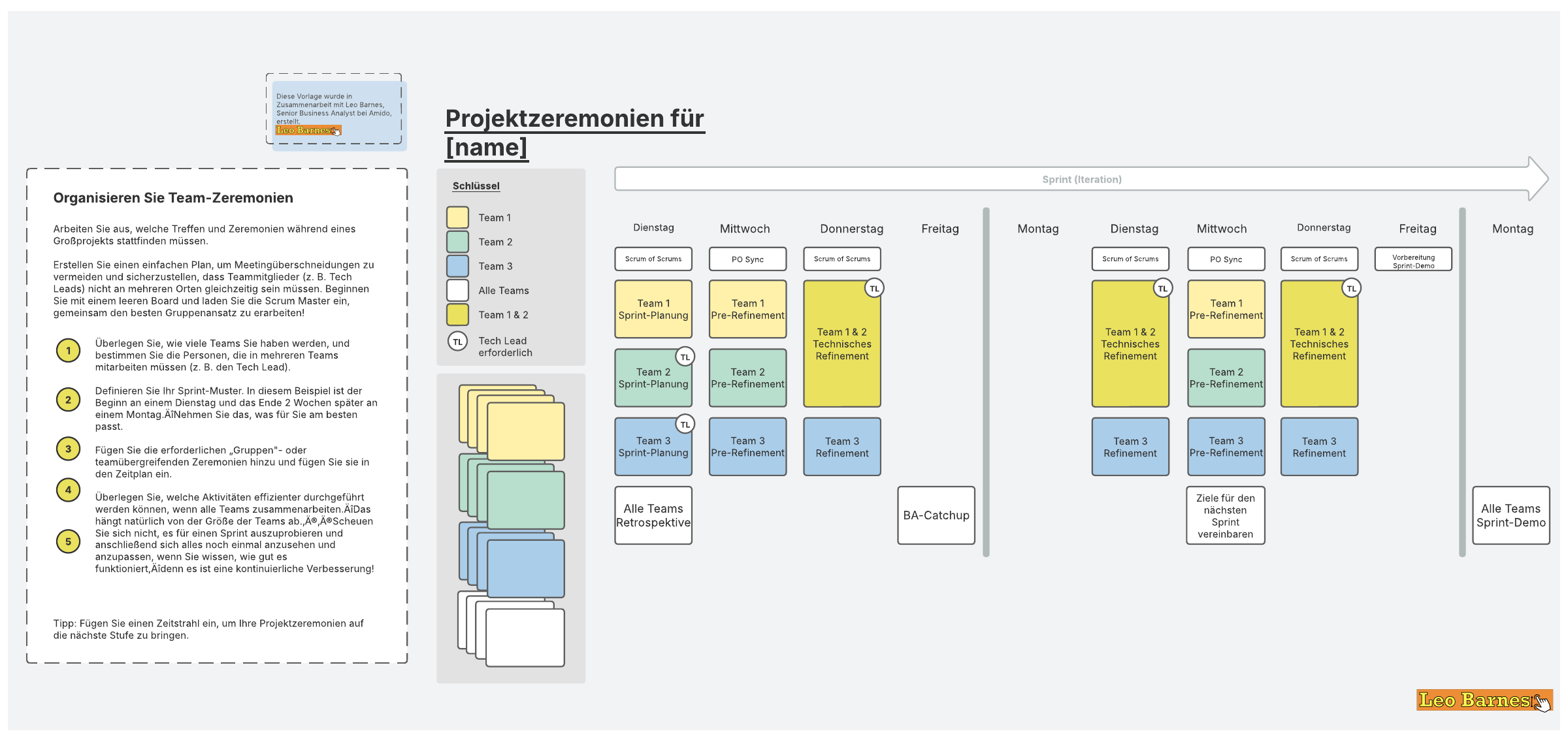 Planen und organisieren Sie große Projekte strategisch, indem Sie mit dieser Vorlage für Projektzeremonien einen einfachen Aktionsplan erstellen.