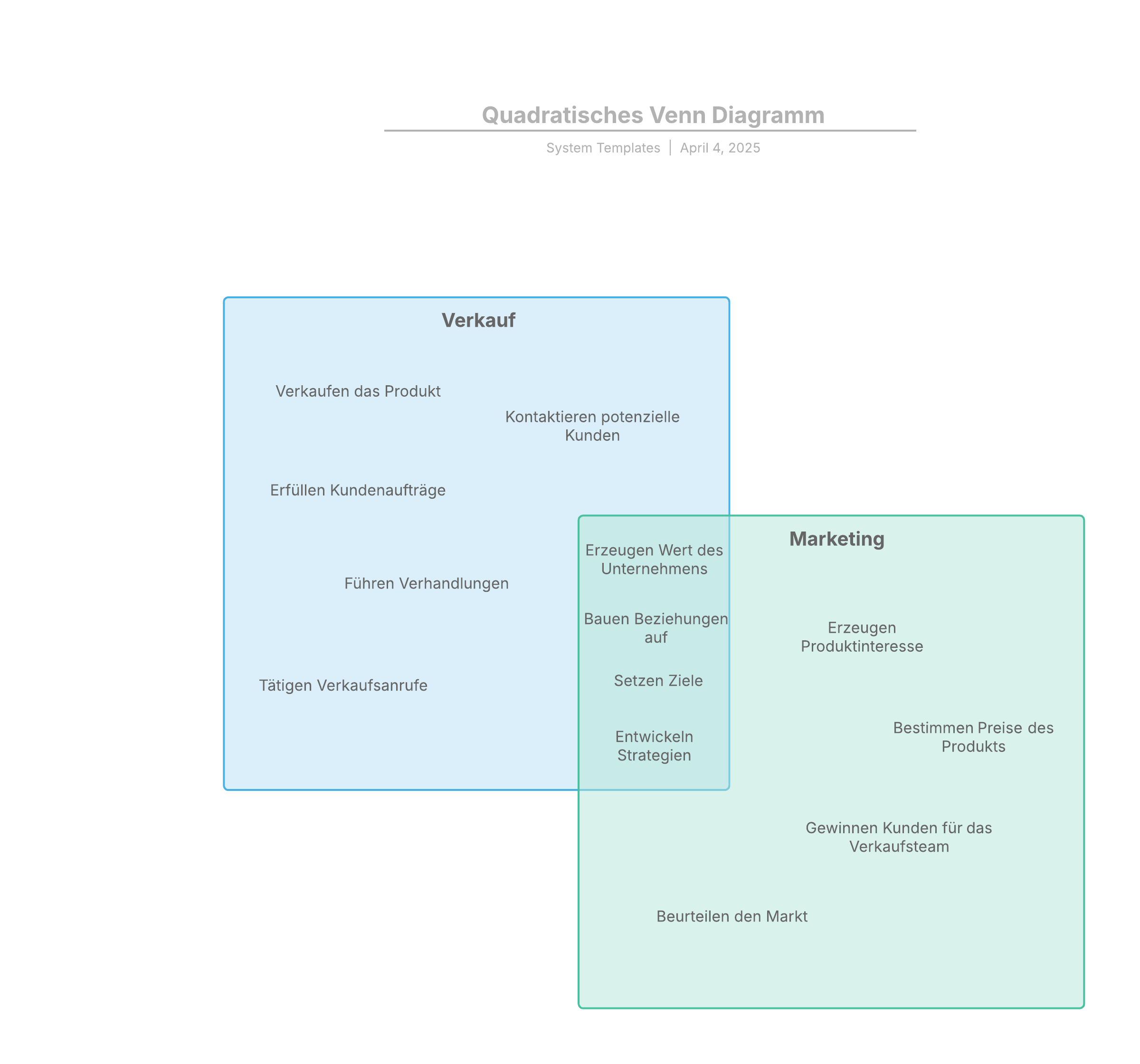 Nutzen Sie dieses quadratische Venn Diagramm um Gemeinsamkeiten und Unterschiede zweier Konzepte darzustellen.