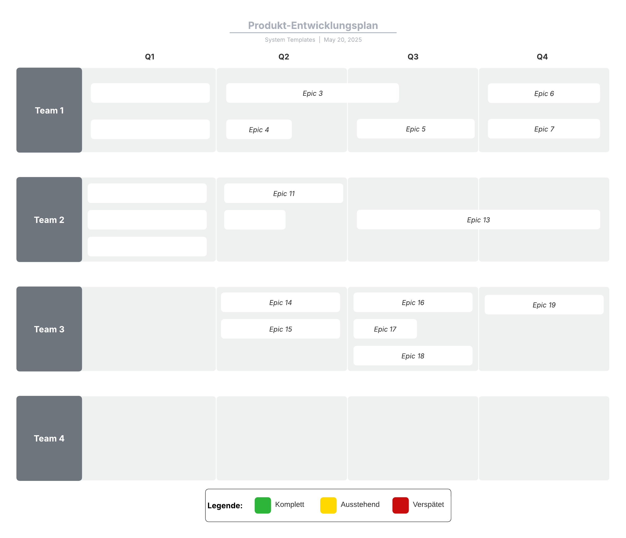– den Status der Epics und der jeweils zuständigen Teams darstellen;