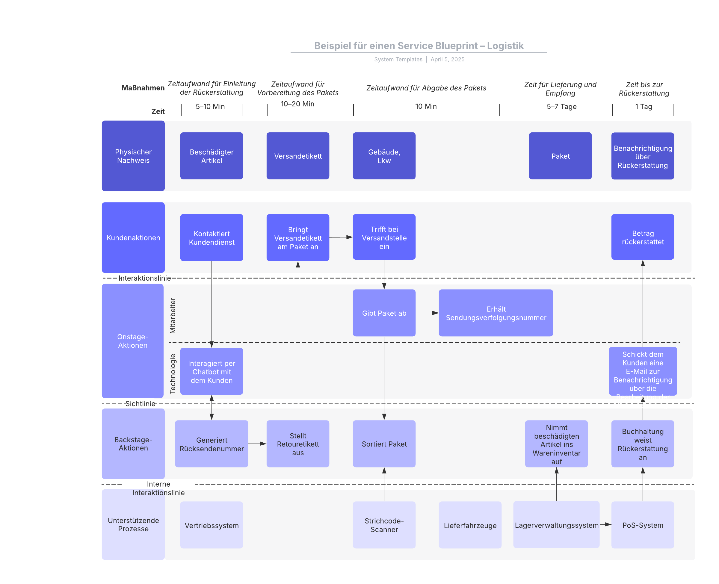 Mit dieser Vorlage für einen Logistik-Service-Blueprint können Sie: