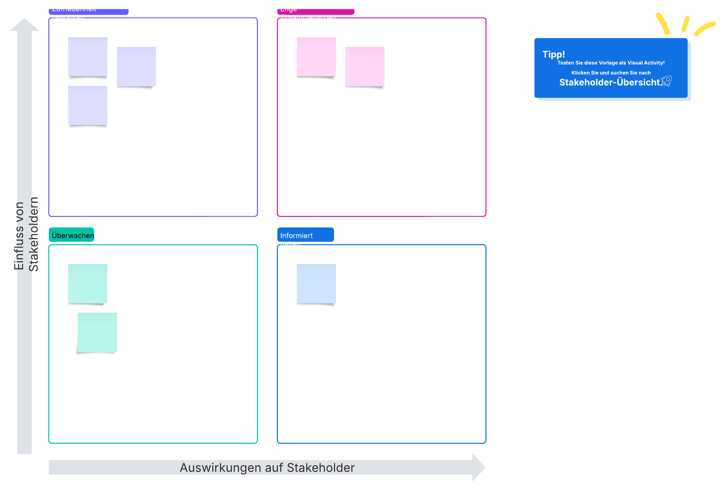 Diese Vorlage für eine Stakeholder Map kann Ihnen folgendermaßen helfen:
