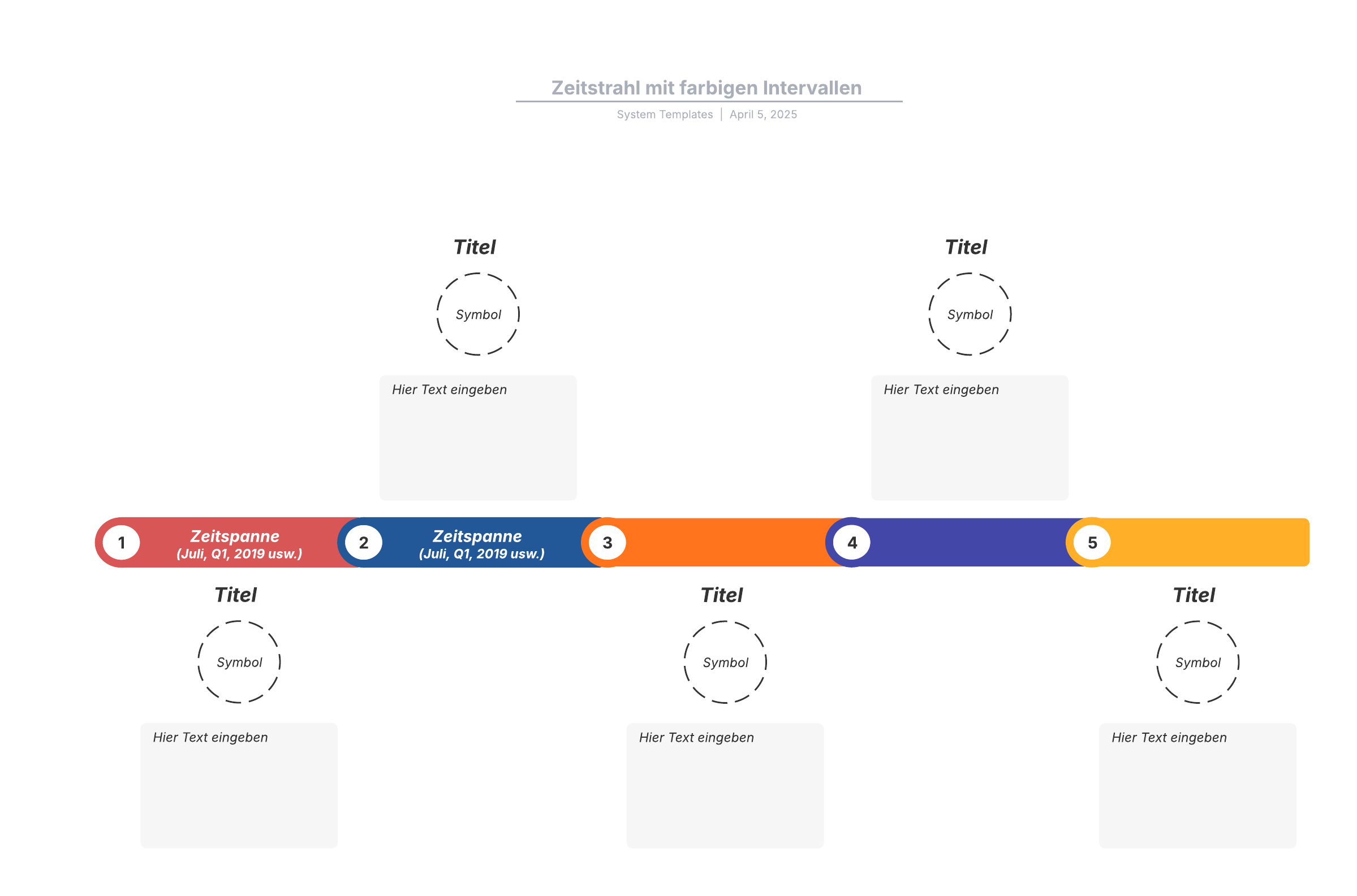 Öffnen Sie diese Vorlage und fügen Sie Inhalte hinzu, um diese leere Infografik-Zeitachse an Ihren Anwendungsfall anzupassen.