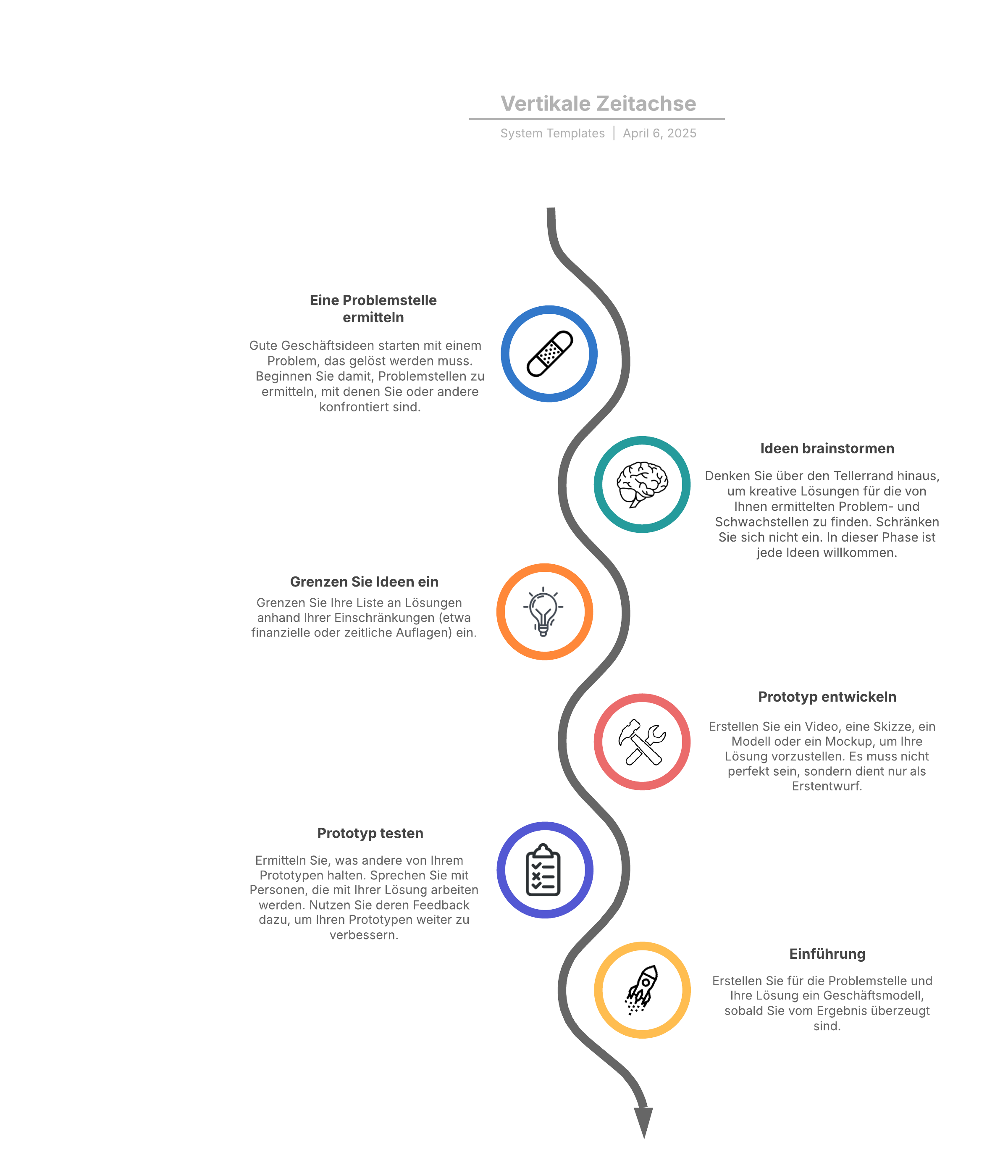 Öffnen Sie diese Vorlage, um ein detailliertes Beispiel für eine vertikale Zeitachse anzusehen und an Ihren Anwendungsfall anzupassen.