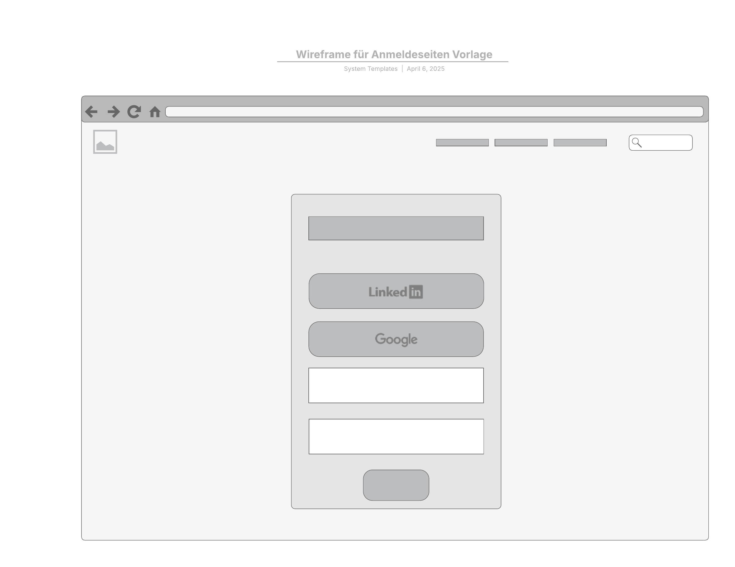 Wireframe für Anmeldeseiten Vorlage
