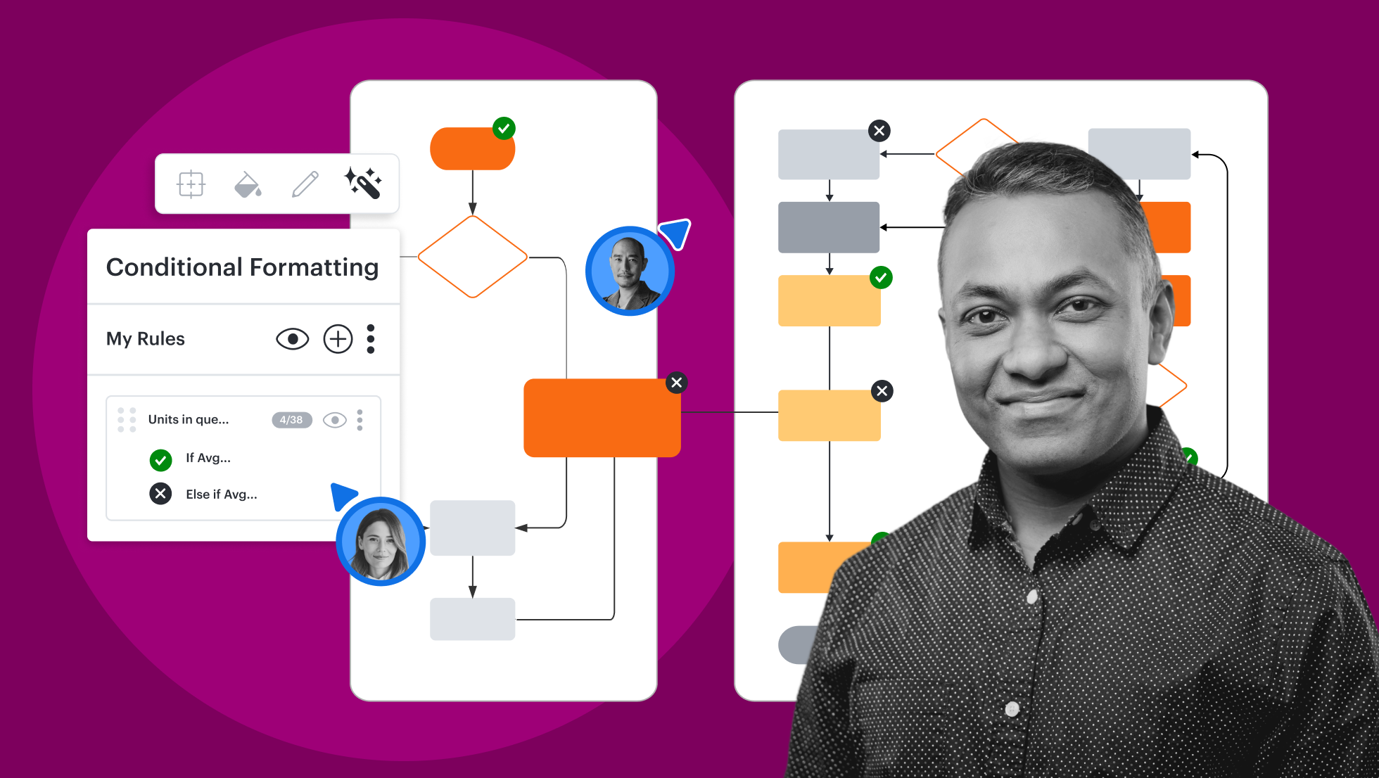 Transform employee data into dynamic visual hierarchies instantly with an AI org chart generator. Import a CSV or use simple prompts, and our AI org chart builder will handle the logic and reporting lines. Whether you use our AI org chart creator free or at scale, Lucid keeps your diagrams aligned without manual formatting.
