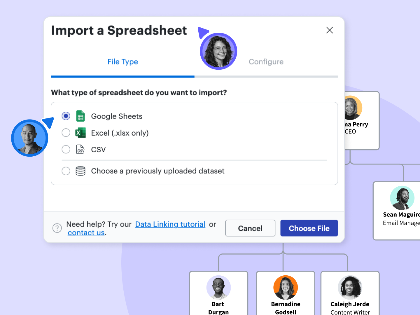 Yes, our AI org chart tool will generate organizational charts automatically by analyzing your prompt or by importing data from sources like Google Sheets, Excel, CSV files, or HR apps such as BambooHR, creating a structured hierarchy instantly.
