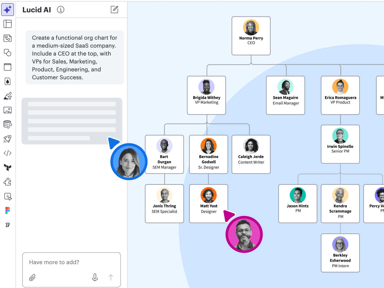 Leverage Lucid AI to create professional org charts that boost clarity and alignment across the organization.