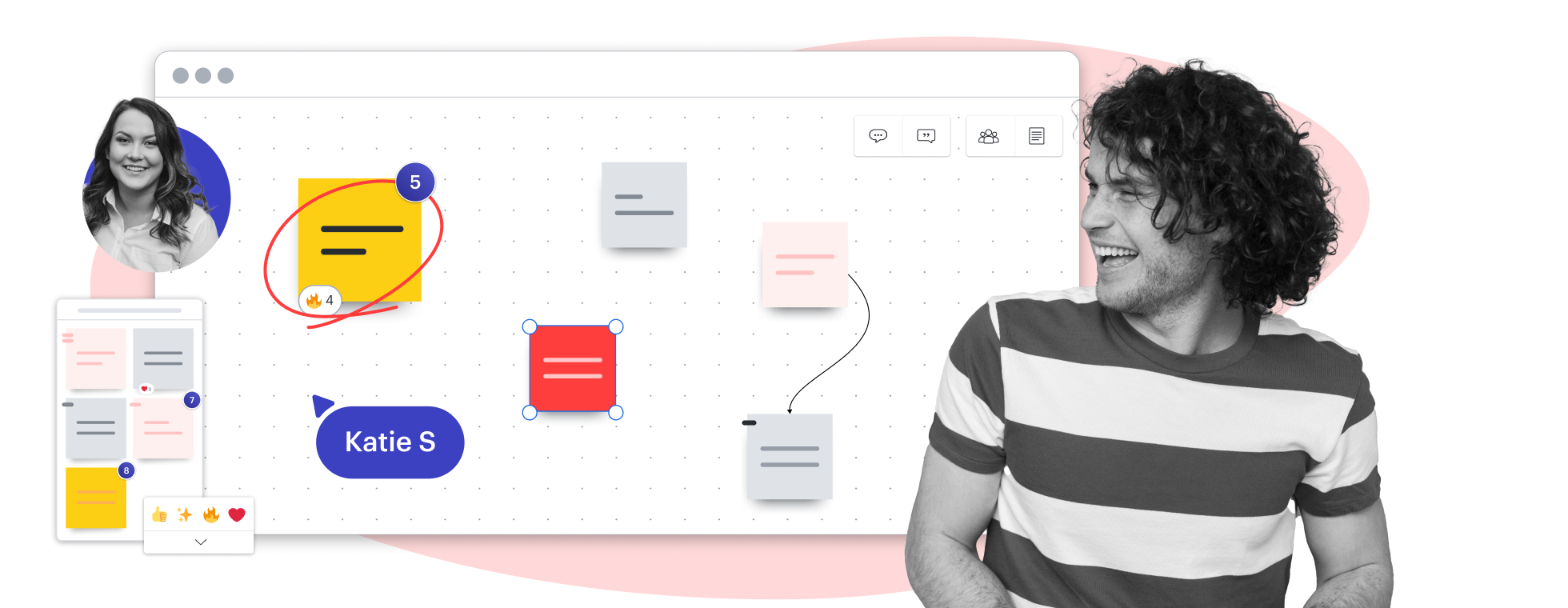 Facilita fácilmente una sesión de lluvia de ideas virtual sincrónica para tu equipo disperso o dales a los participantes la flexibilidad de agregar ideas y hacer comentarios de manera asincrónica.