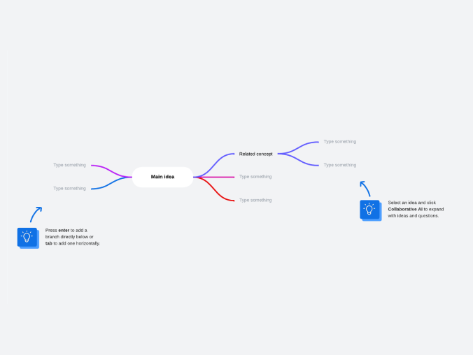 Construye un mapa conceptual de forma rápida e intuitiva. Usa la IA colaborativa para generar nuevas ideas y construir a partir de pensamientos existentes.