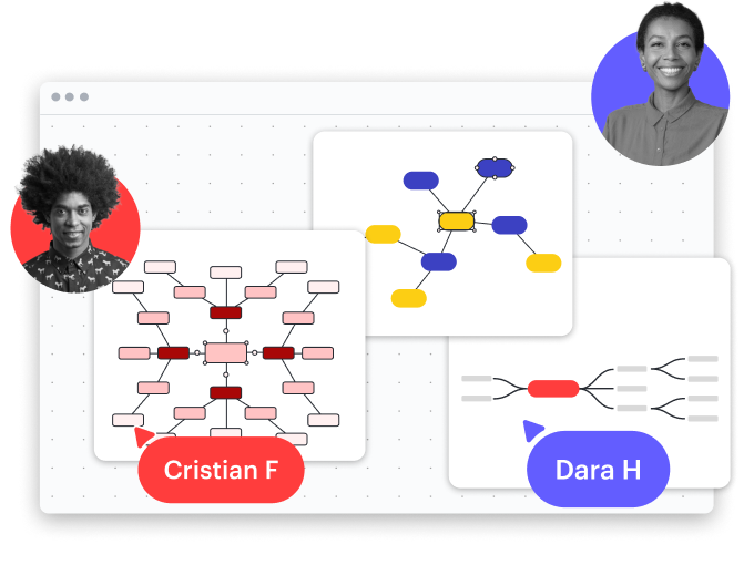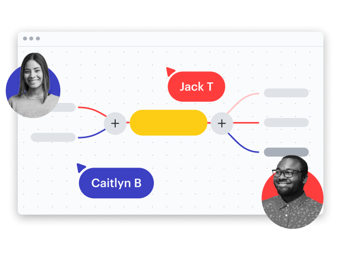 Facilita sesiones de ideación más productivas con nuestro creador de mapas mentales. Reúne a tu equipo en tiempo real o en cualquier momento para compartir ideas, tomar decisiones e identificar los próximos pasos.