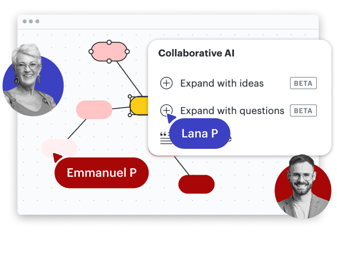 Construye un mapa mental de forma rápida e intuitiva con la IA colaborativa. Genera más sugerencias para agregar a tu tablero y despierta nuevas ideas.