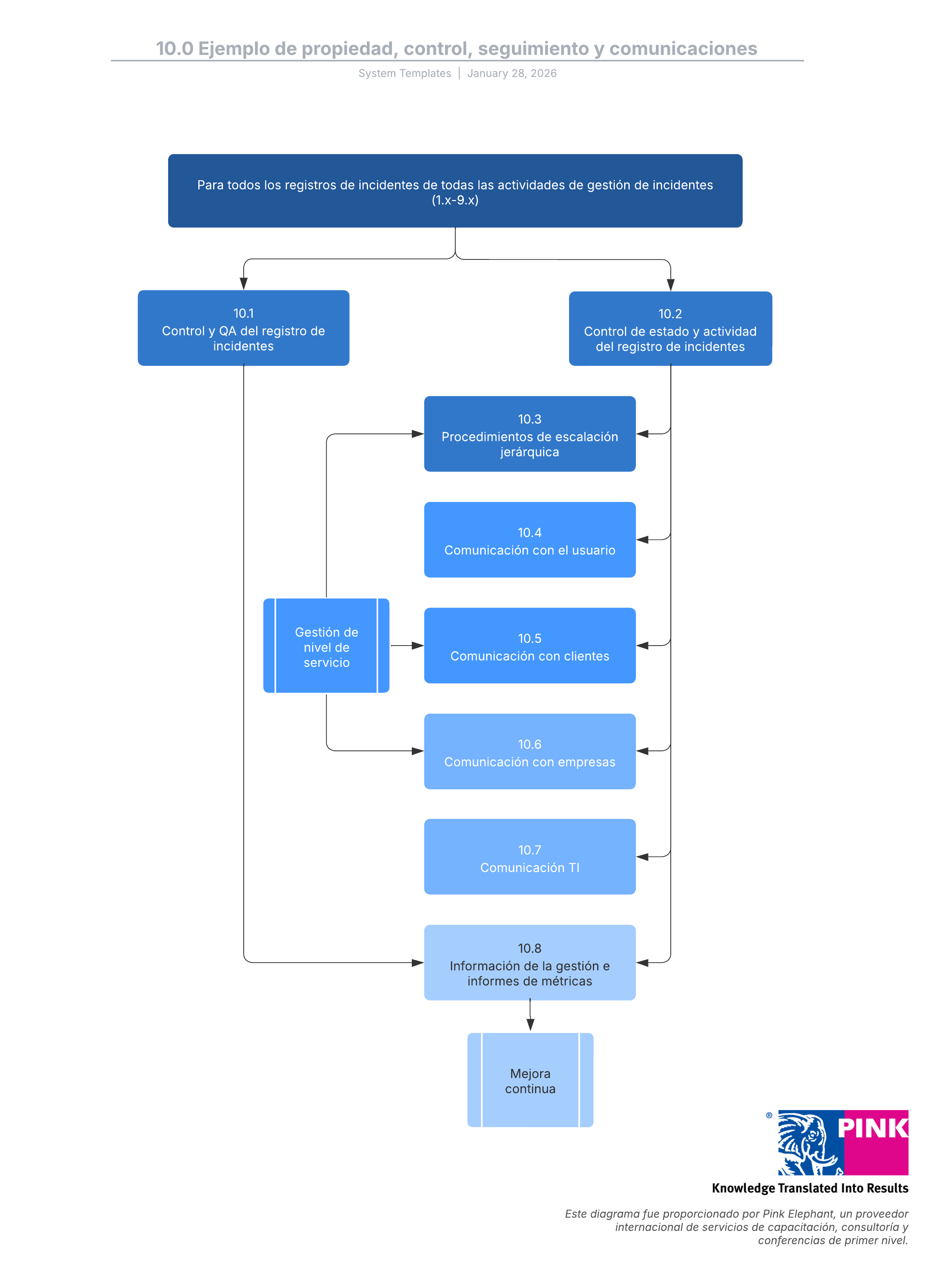 Esta plantilla de flujo de proceso de propiedad, control, seguimiento y comunicaciones de Pink Elephant puede ayudarte a lograr lo siguiente: