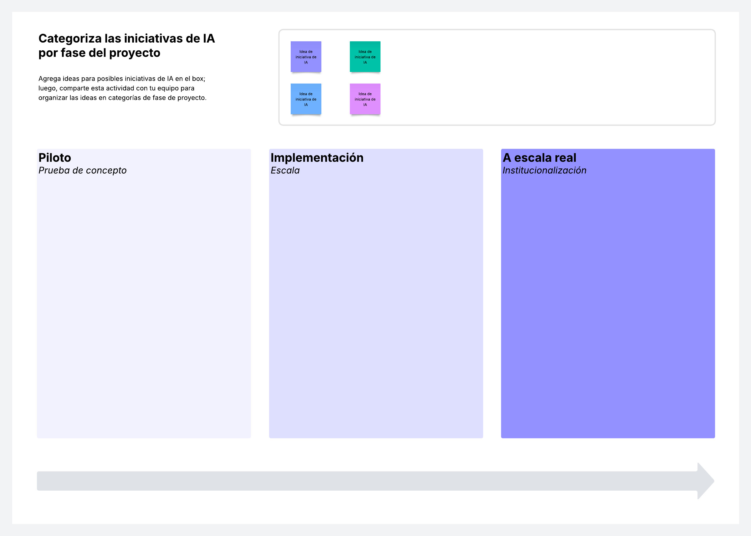 Clasifica las posibles iniciativas de IA en fases de proyecto.