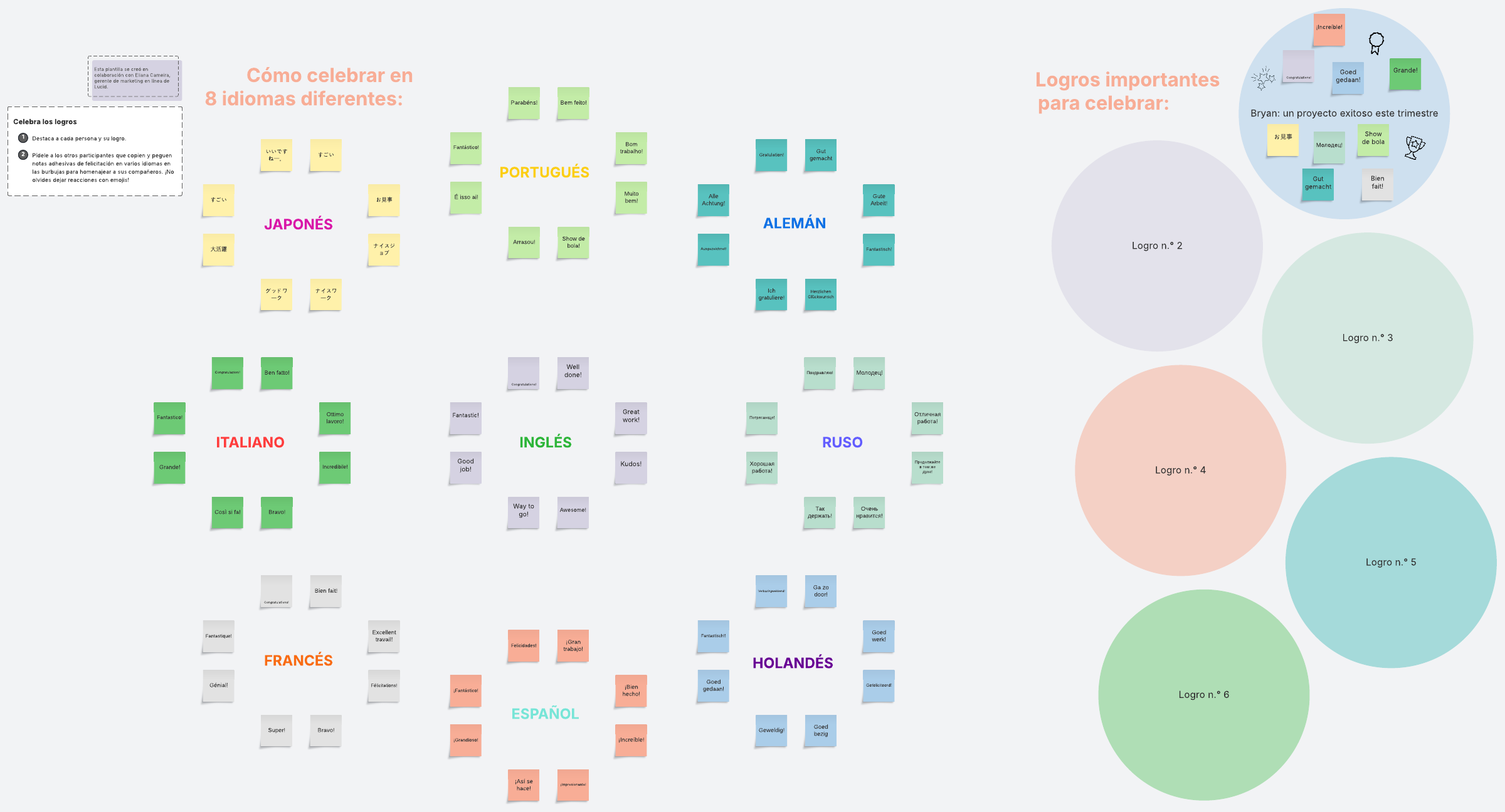 Usa esta plantilla para destacar y celebrar los logros de tus compañeros en diferentes idiomas.