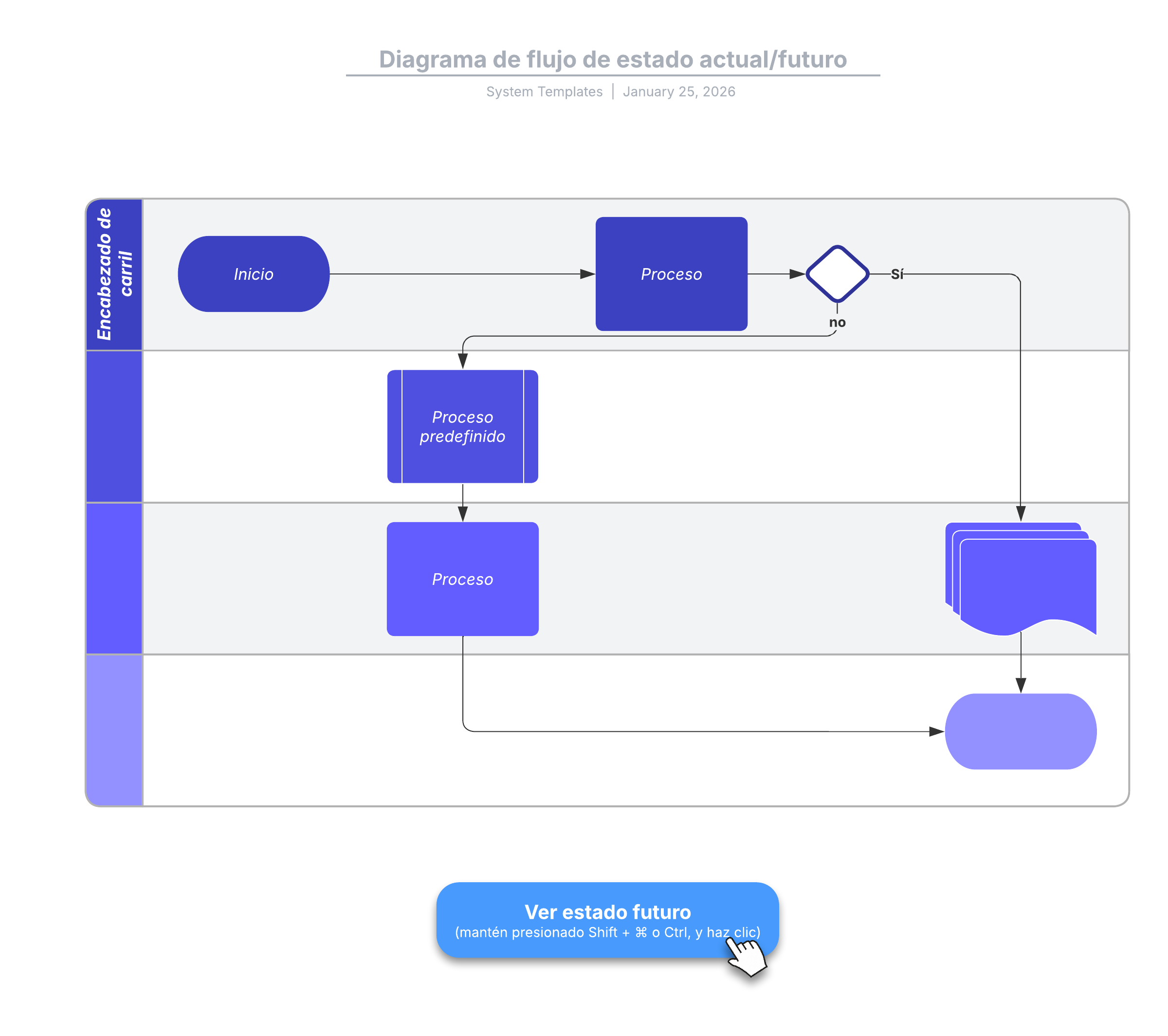 Abre esta plantilla y agrega contenido para personalizar este diagrama de flujo de estado actual/futuro según tu caso de uso.