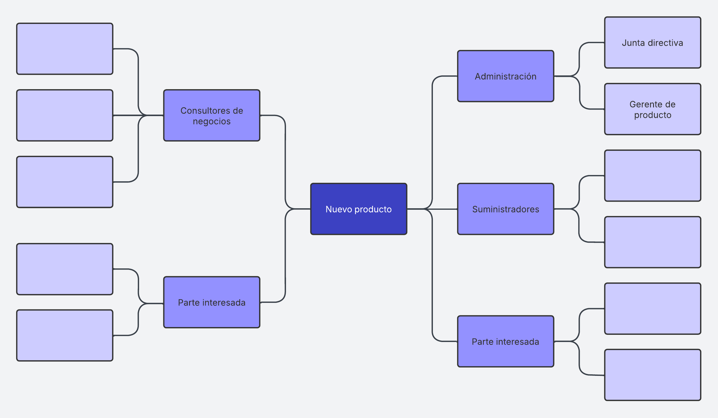 Utiliza este diagrama de partes interesadas para trazar un mapa de partes interesadas del proyecto y cómo influyen en el progreso de tu equipo.