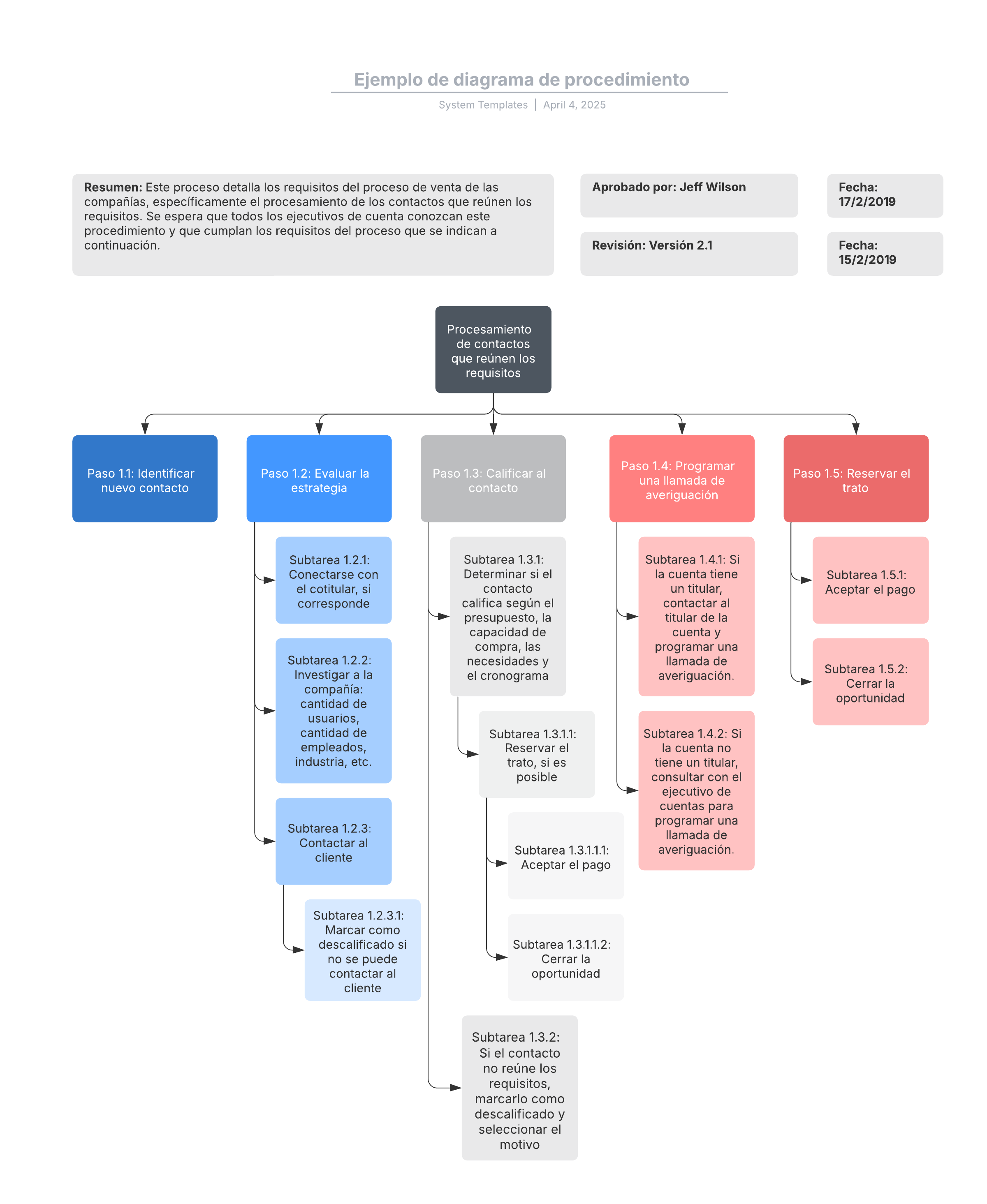 Abre esta plantilla para ver un ejemplo detallado de un diagrama de procedimiento que puedes personalizar según tu caso de uso.