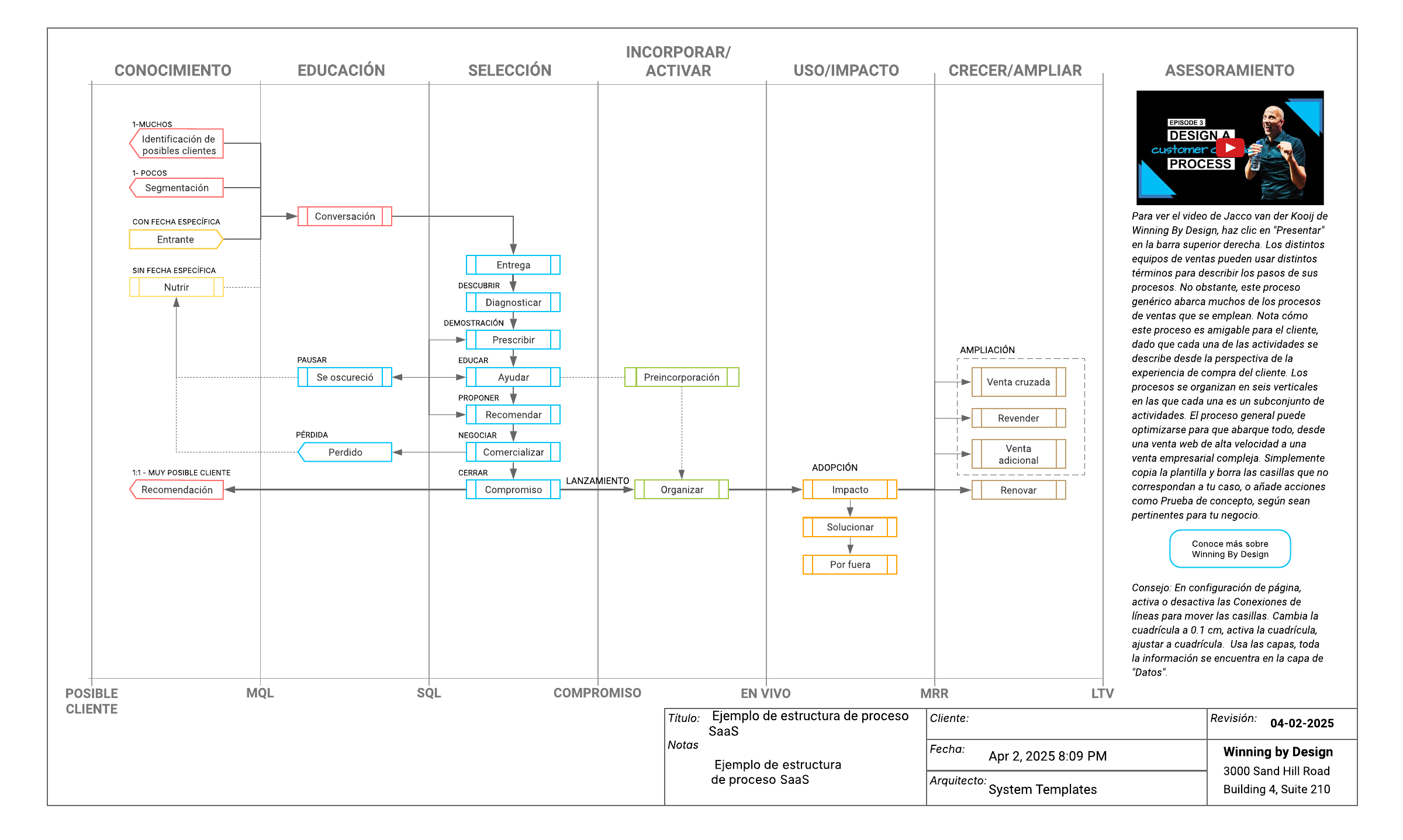 Esta plantilla de estructura de proceso SaaS de Winning By Design puede ayudarte a lograr lo siguiente: